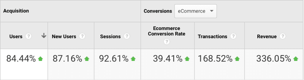 1. Increasing the volume of traffic and sales from the most cost-effective traffic channels – achieving a 212% increase in revenue from Organic Search and 165% increase in revenue from Email.