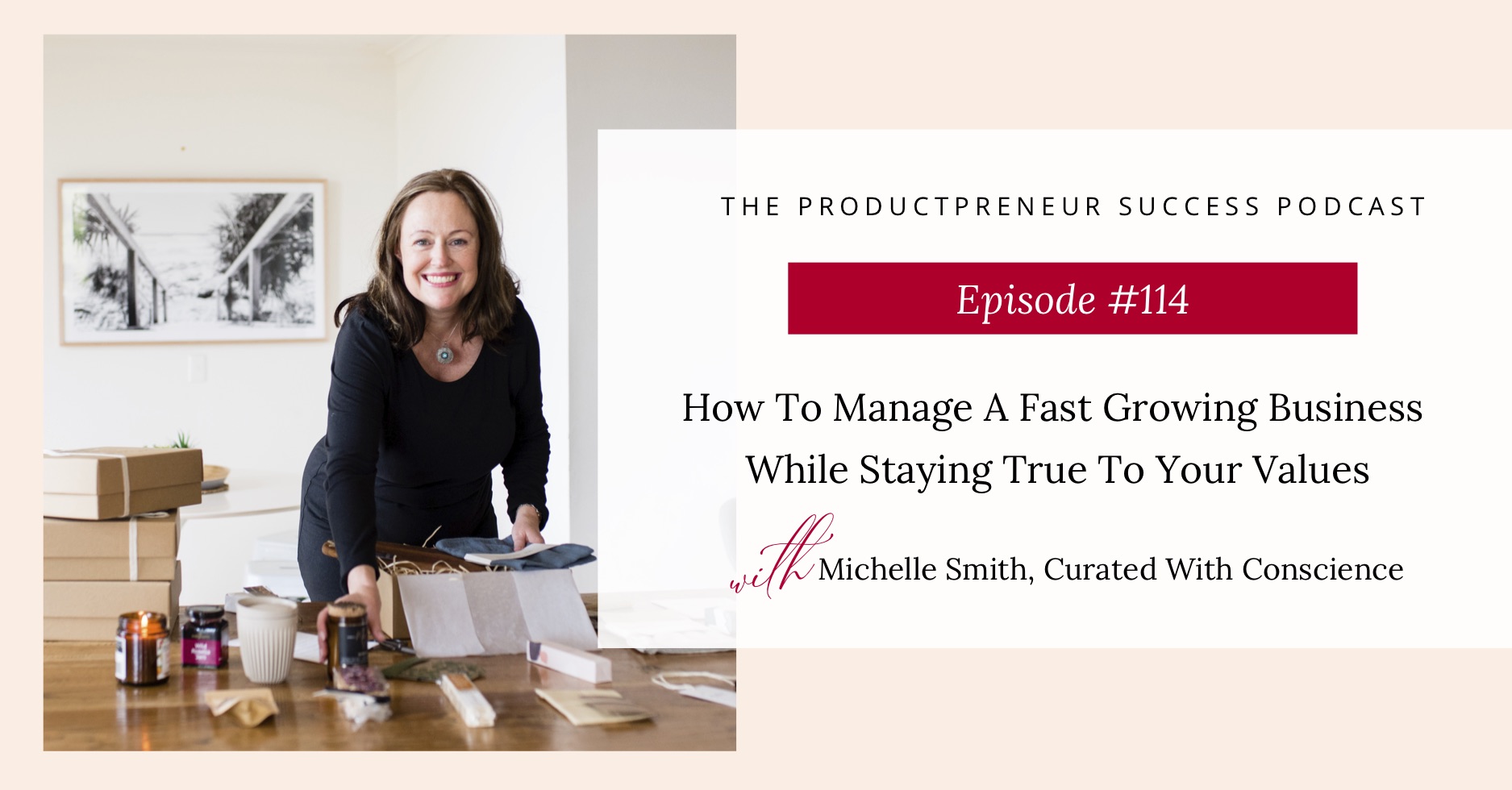 Today on the show, I’m joined by Michelle Smith, founder of Curated with Conscience, which is a beautiful gift hamper business that exists to have a positive impact on the environment and sustainability.