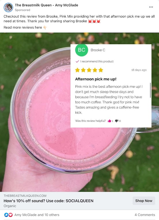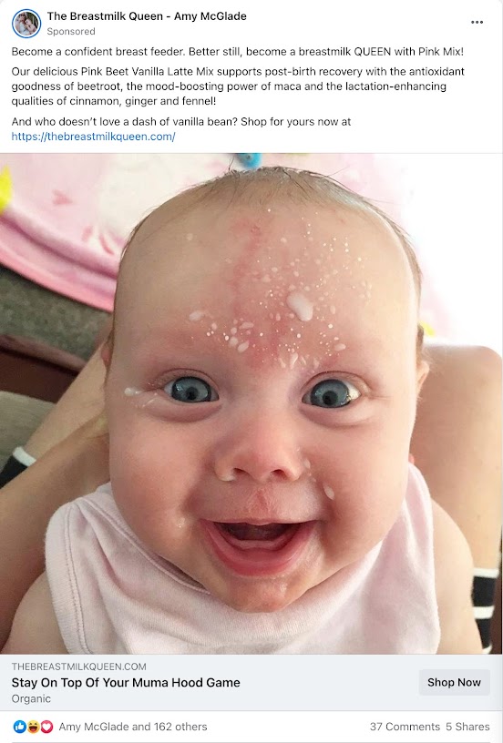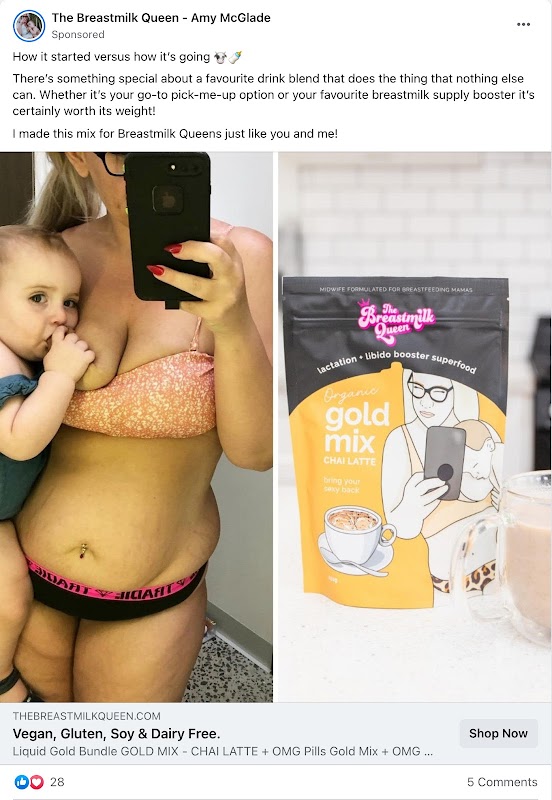 Whilst this brand does compete in a congested eCommerce space – there are many supplements brands on the market! But this brand’s niche – supplements to boost breastmilk supply – advertising on Facebook was always going to be tricky…